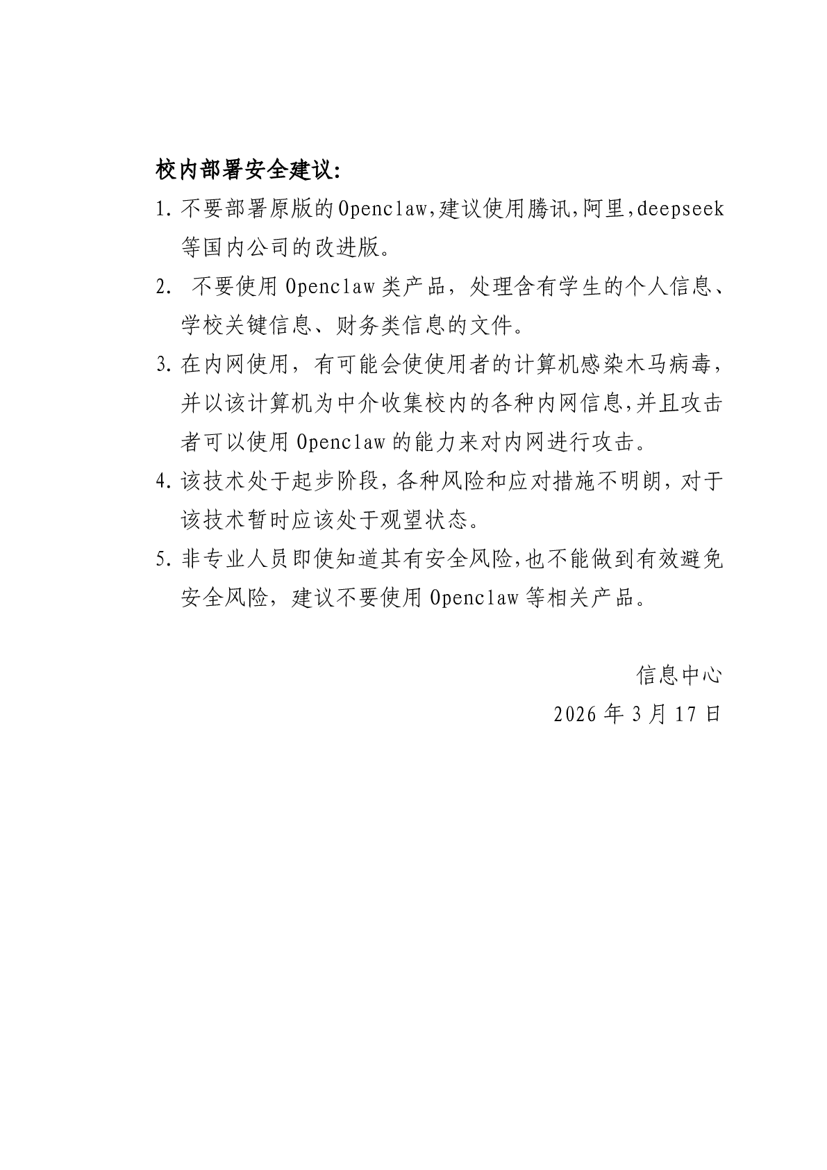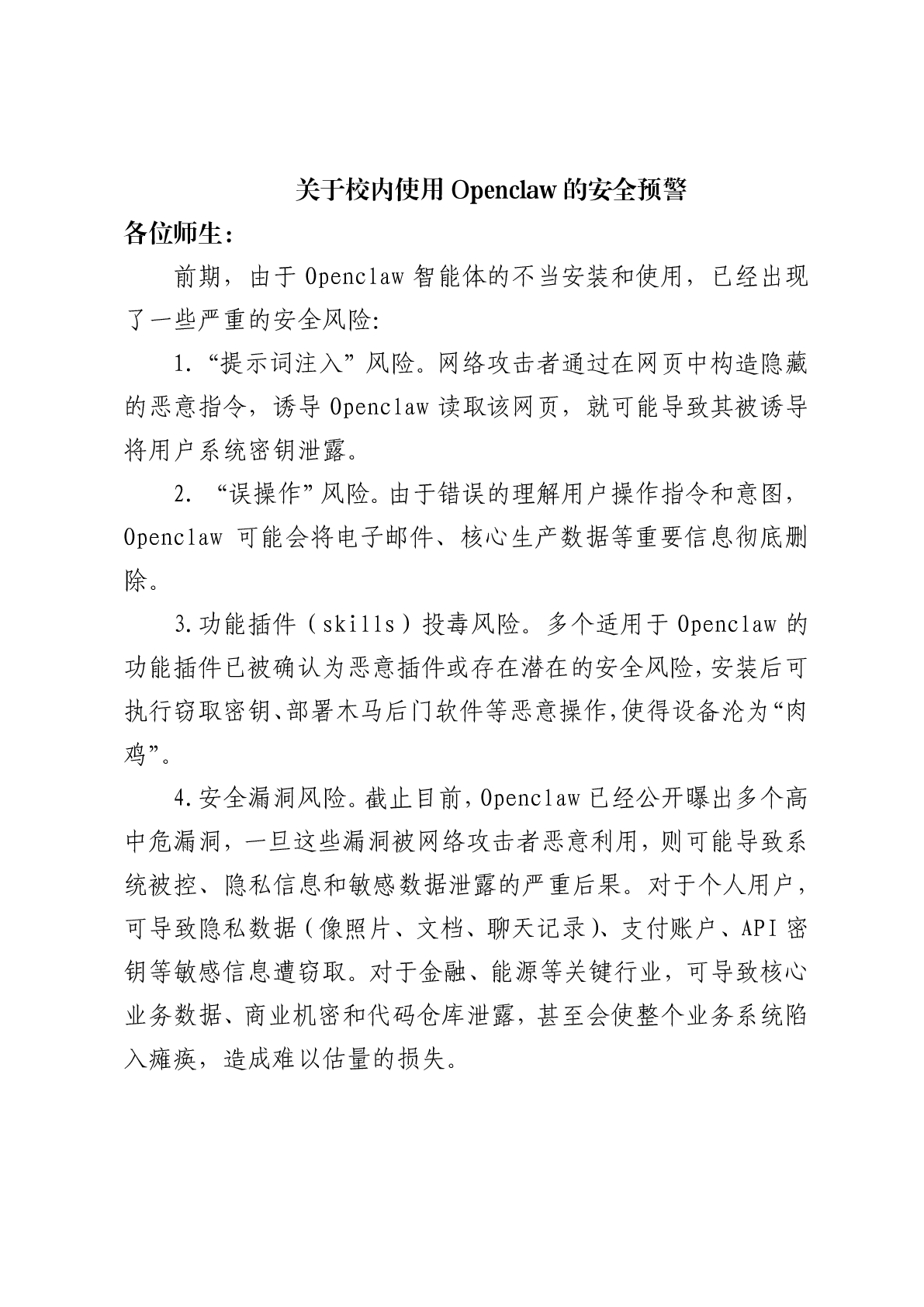 关于校内使用Openclaw的安全预警